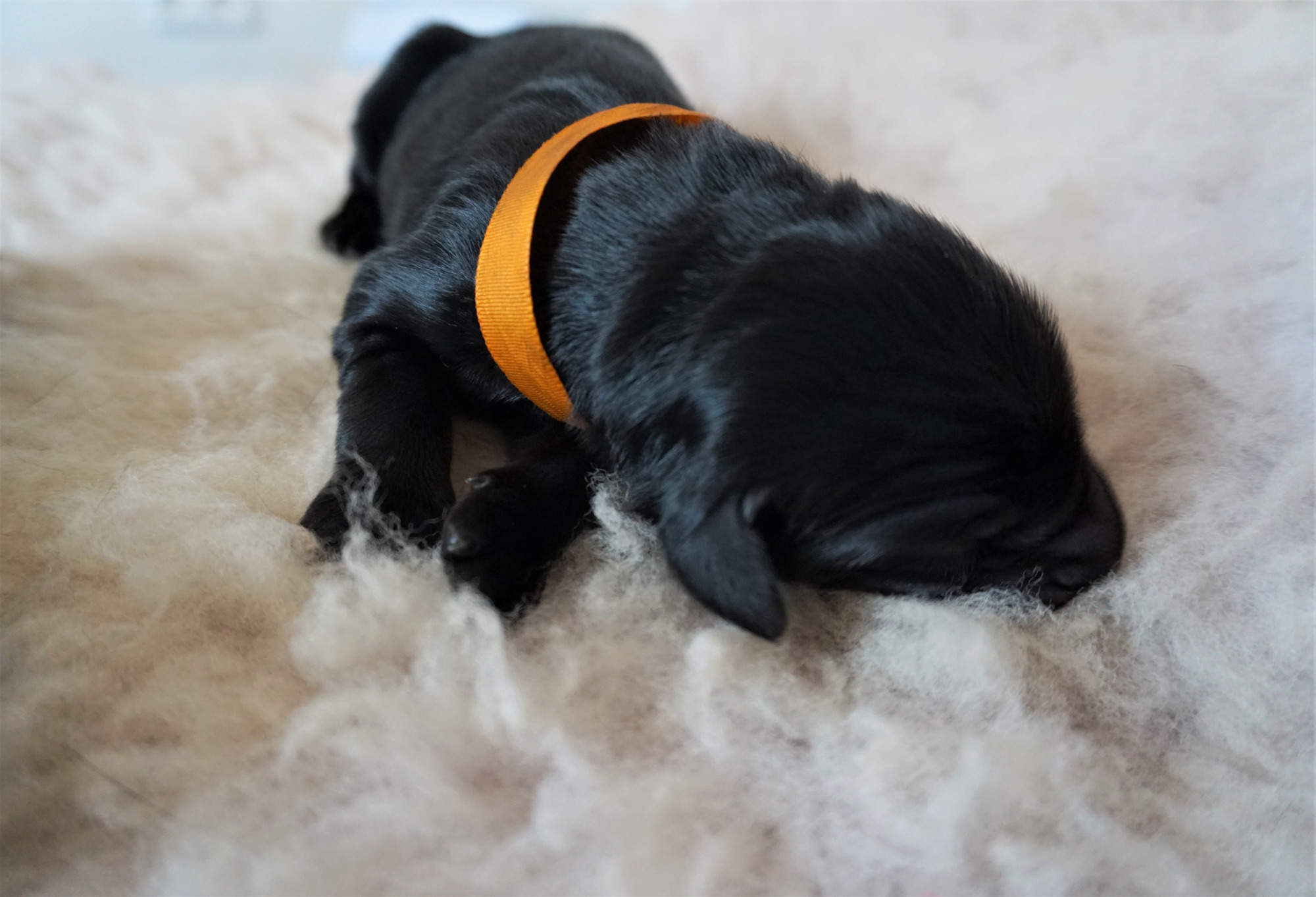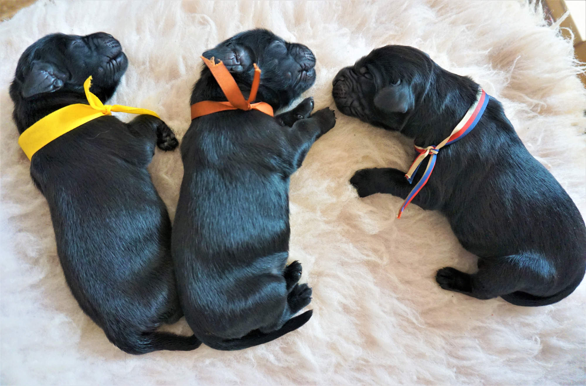 Všichni jsou typické flatí povahy, budou závislí na člověku a budou se umět přizpůsobit páníčkovým požadavkům... někteří jsou temperamentnější a také nadšení pro práci a aportování se už projevuje ! Zejména u holčiček - červené, fialkové, tmavě fialové, oranžové, modré a trikolorní a u kluků u bleděmodrého i hnědého. Submisivnější se zatím jeví žlutá, růžová, a bílá holčička . ![]()